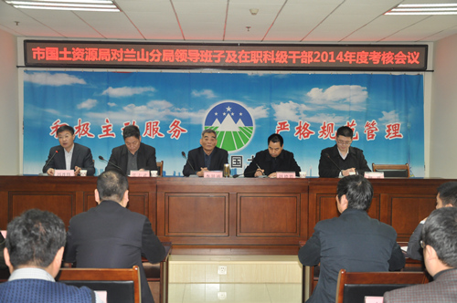 ????? ?1月29日,市局党委委员、副局长李景波,市局执法监察处处长闫丽丽,办公室科员梅波,区委组织部常务副部长、老干部局局长赵德胜、区纪委第一纪工委书记、监察分局局长张志武组成联合考核组,对兰山分局领导班子及在职科级干部进行年度考核。市局副调研员、兰山分局党组书记、局长冯连伟主持考核会议并作工作报告。分局班子全体成员,各国土所所长和机关中层以上干部参加了会议。???